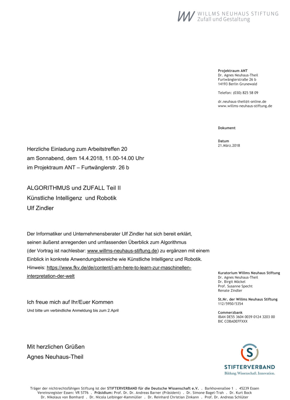 Algorithmus und Zufall, Teil IIKünstliche Intelligenz und Robotik Vortrag von Ulf Zindler, Informatiker 14.04.2018 11-14 UhrArbeitstreffen 20 Projektraum ANT