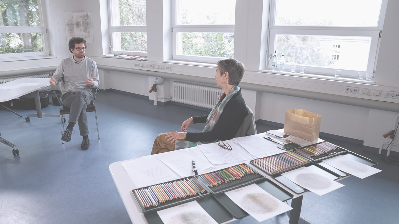 Videostill: „Innehalten vor Proxy 38“, Gesprächsexperiment mit Dr. Benjamin Schütze, Politikwissenschaft und Katrin von Lehmann,