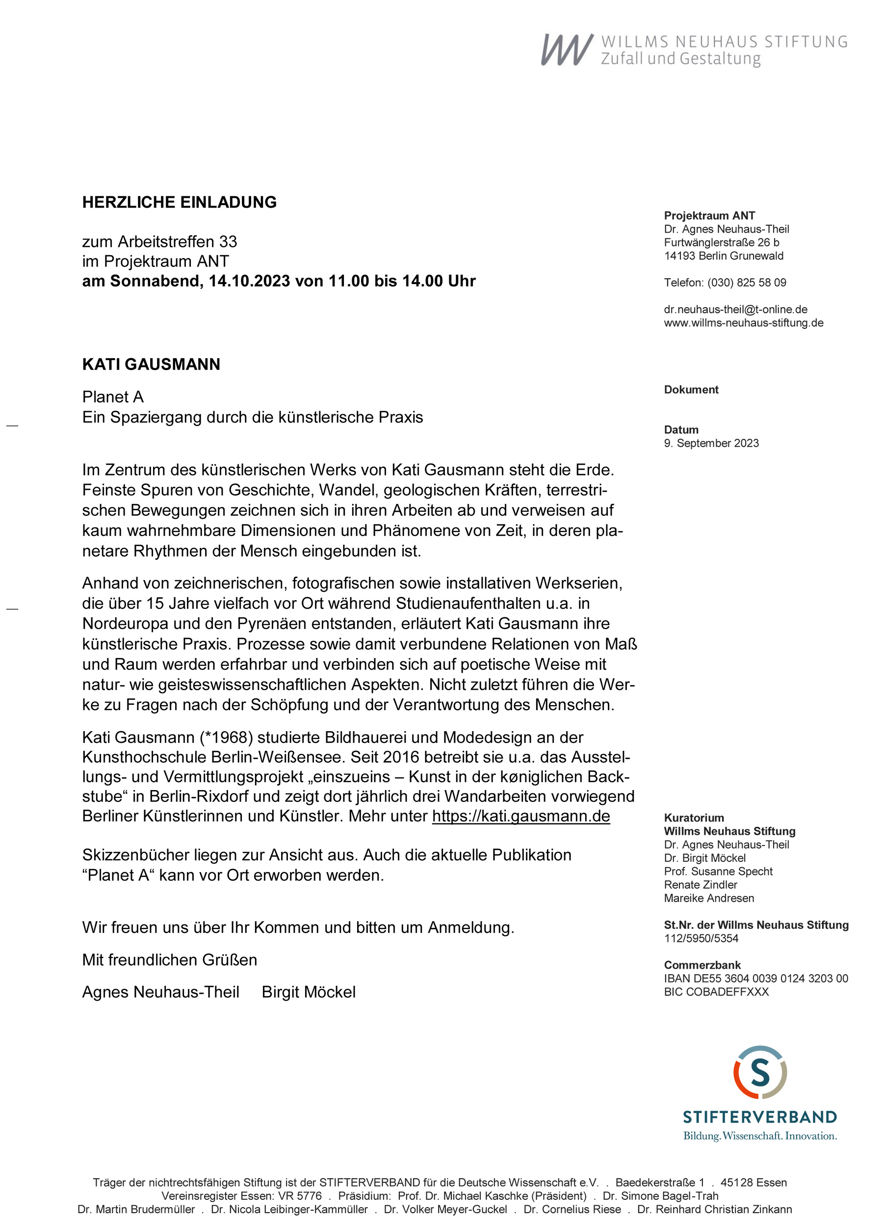 Planet AEin Spaziergang durch die künstlerische Praxis Vortrag von Kati Gausmann, bildende Künstlerin 14.10.2023 11-14 UhrArbeitstreffen 33 Projektraum ANT
