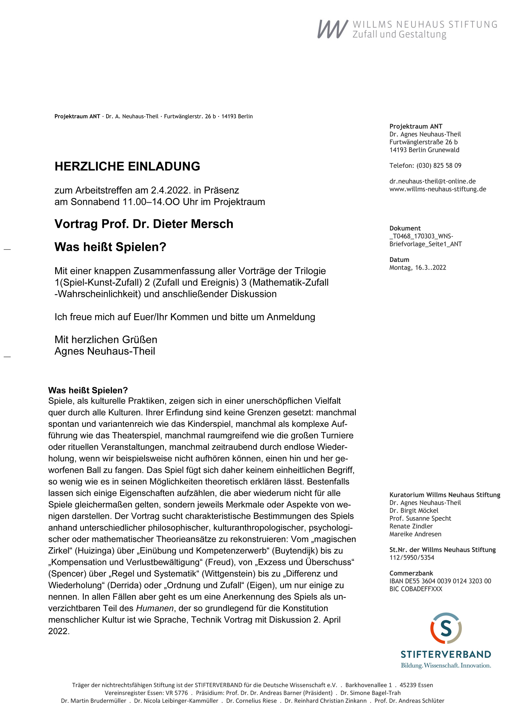 Tetralogie 4: Was heißt spielen? Kleine Theorie des Spiels. Vortrag von Prof. Dr. Dieter Mersch, Medienwissenschaftler und Autor 02.04.2022 11-14 UhrArbeitstreffen 28 Projektraum ANT
