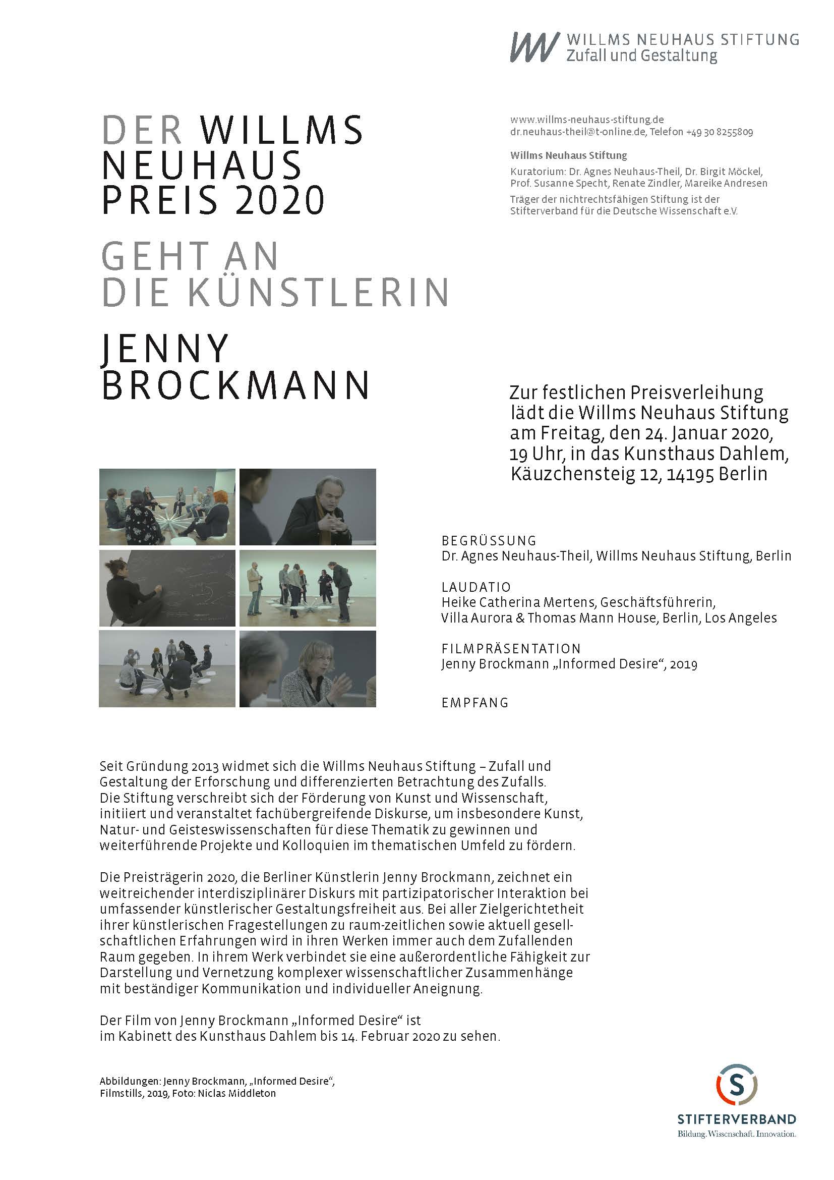 JENNY BROCKMANN *1976 ist Künstlerin (UdK Berlin, Meisterschülerin von Rebecca Horn) und Architektin (TU Berlin), lebt und arbeitet in Berlin. Ihre Skulpturen, partizipativen Installationen und diskursiven Projekte werden international präsentiert. In ihrem Werk verbindet die Künstlerin Jenny Brockmann eine außerordentliche Fähigkeit zur Darstellung und Vernetzung komplexer wissenschaftlicher Zusammenhänge mit beständiger Kommunikation und individueller Aneignung. Ihre künstlerischen Erkundungen gelten den Schnittstellen zwischen Natur und Kunst, Kunst und Wissenschaft, Geistes- und Naturwissenschaft. Immer erforscht sie das Widerständige, Prozessuale, Dynamisch-Interaktive im Raum und damit auch in der Zeit. Ihre umfassenden „Wissensräume“ entstehen aus fachübergreifenden Zusammenhängen und evozieren philosophische und psychologische Fragen, die sich aus kommunikativen Prozessen immer neu stellen.
